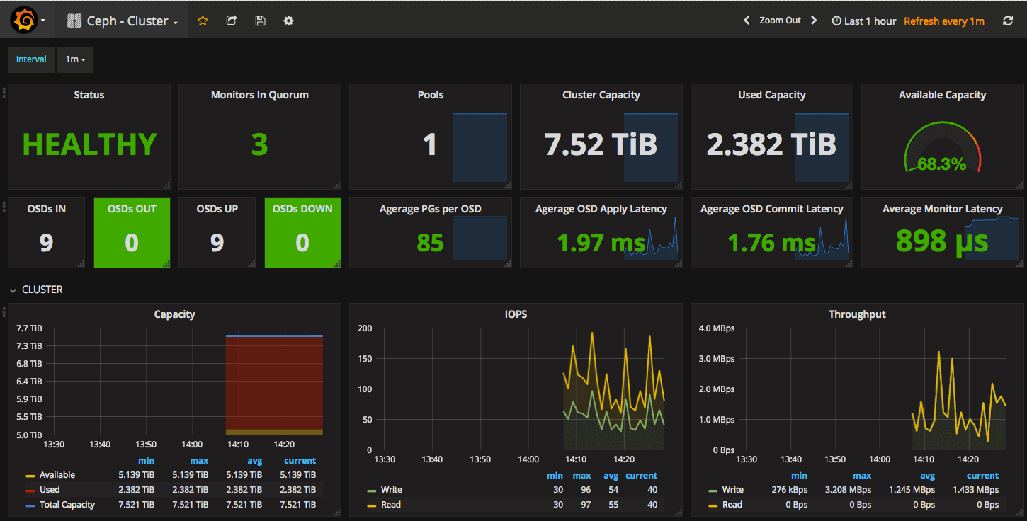 1 | $ sudo docker run -v /etc/ceph:/etc/ceph -p=9128:9128 -td digitalocean/ceph_exporter |