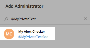 Добавляем бота под названием BotFather и отправляем ему команду /newbot, выбираем имя, которое будет отображаться в списке контактов и адрес. Например, «My Alert Checker» с адресом «MyPrivateBot».