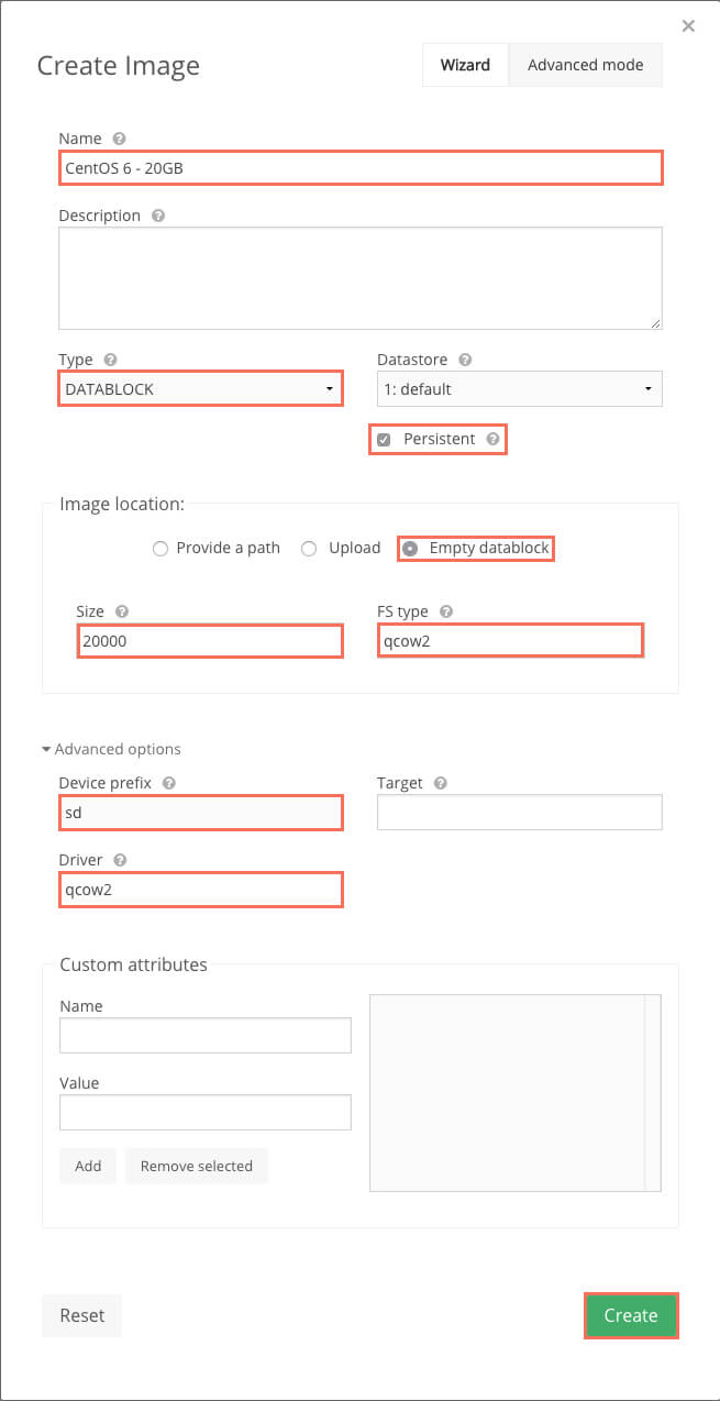 Переходим в Virtual Resources -> Images и создаем новый диск.