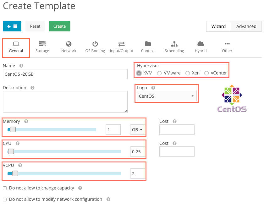 Переходим в Virtual Resources -> Templates и создаем новый шаблон.