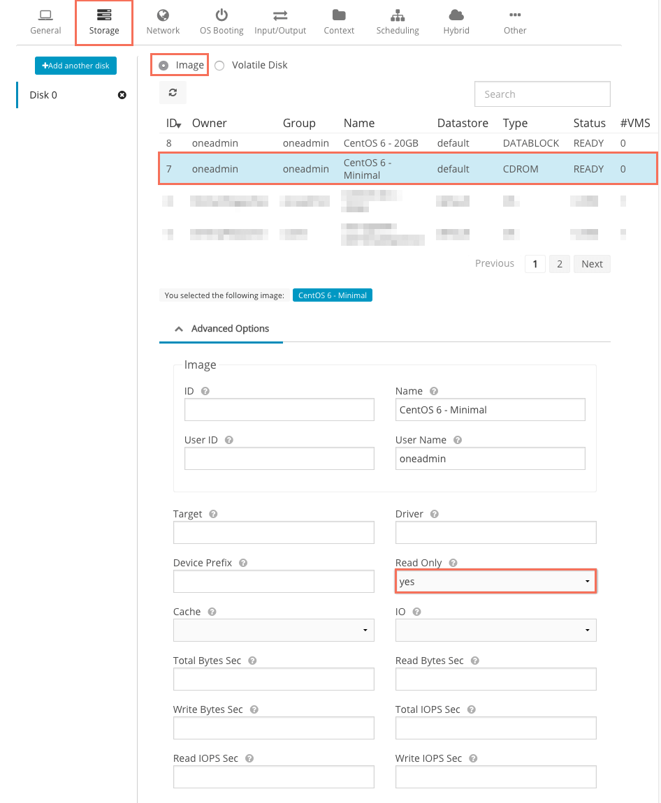 Переходим в Virtual Resources -> Images и изменим тип нашего блочного устройства с Datablock на OS.