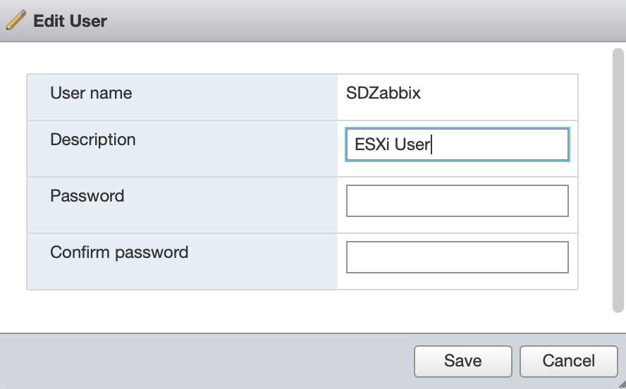 Zabbix отслеживает VMware с помощью службы API (SDK), поэтому обязательно создаём действительного пользователя в vCenter, которого может использовать на сервере Zabbix.
