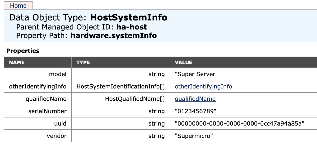 Для проверки, что всё получилось, переходим по адресу https://esxi_server_fqdn/mob/?moid=ha-host&doPath=hardware.systemInfo, должен открыться Managed Object Browser. После авторизации попадёте в раздел информации хоста.
