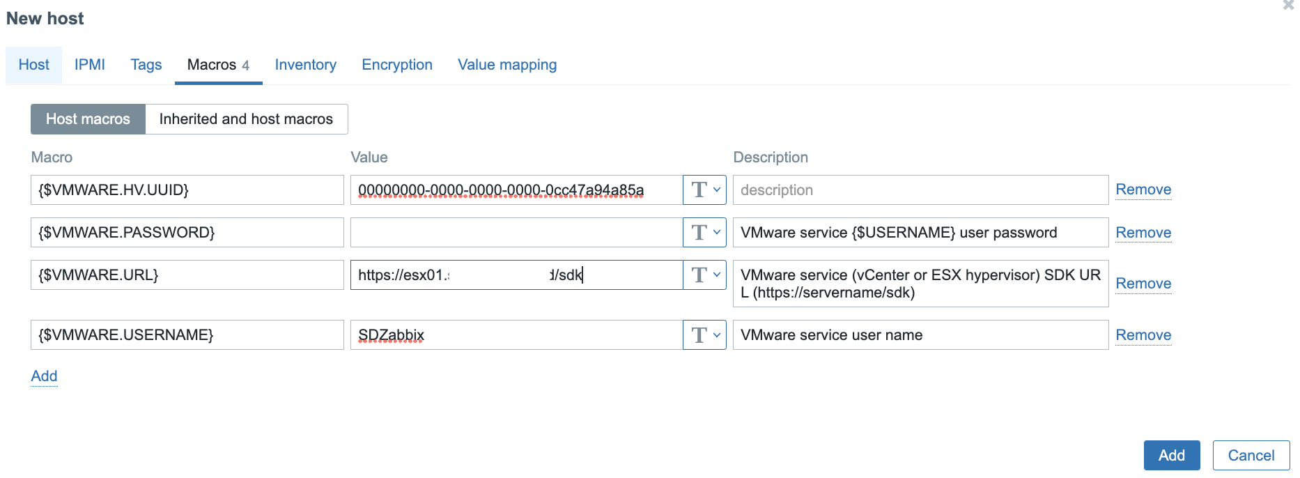- {$VMWARE.HV.UUID} - ранее полученный UUID хоста;